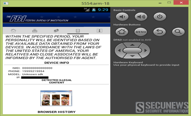 Ressemblant à une notification du FBI suite à la consultation de pornographie illégale ce ransomware vous réclame 450 euros pour retrouver l’accès à votre téléphone.