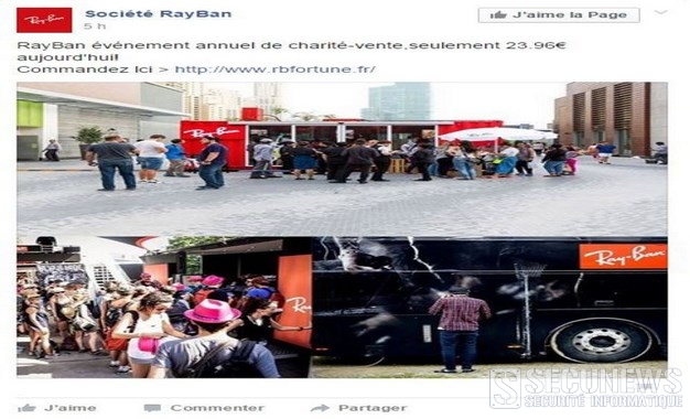 Luxottica, la société détentrice de la marque Ray-Ban, confirme n’avoir rien à voir avec cette page Facebook.