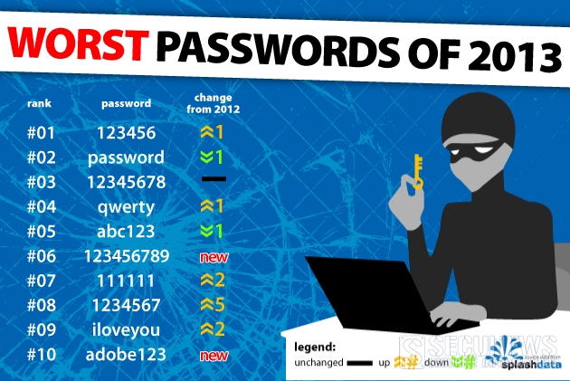 L’entreprise SplashData a publié comme chaque année son palmarès des 25 mots de passe les plus utilisés en 2013.
