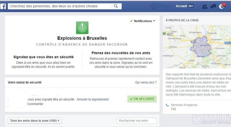 Facebook active son ‘Safety Check’ après avoir reçu des alertes des agences mondiales de signalement de crise et un volume important des messages concernant un incident sur le réseau social.