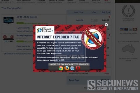 Kogan.com, un e-commerçant australien, veut encourager les internautes à passer à une version plus récente du navigateur de Microsoft.