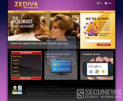 Un artifice qui nécessite d’importants moyens, et qui comporte donc des limites, les inscriptions au site sont actuellement suspendues, le temps que Zediva augmente ses capacités.