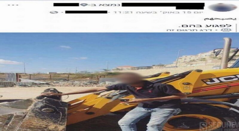 Très vite, la publication est partagée et arrive aux oreilles de la police israélienne, qui sans vérifier la véritable traduction, pense qu’il s’agit là d’une menace et que l’homme prépare une attaque au bulldozer.