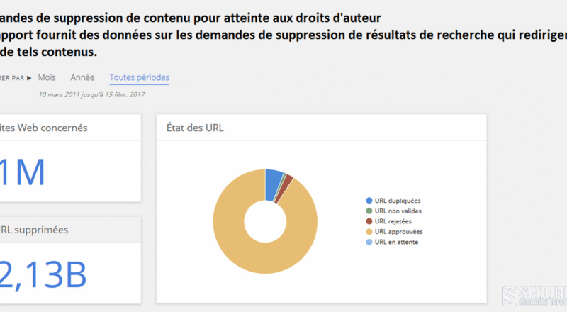 Dans son dernier rapport de transparence, le géant américain de l’Internet a annoncé que plus d’un million de site web font actuellement l’objet d’une demande de suppression de contenus pour atteinte présumée aux droits d’auteur.