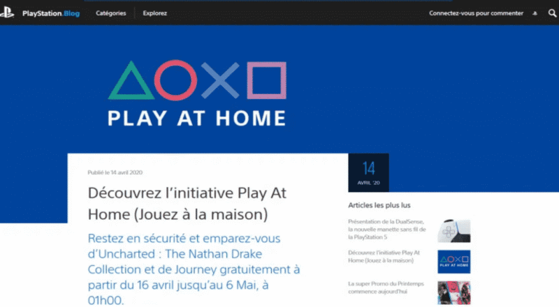 En période de confinement, le message de Sony vous dit: Play At Home, Jouez à la maison.