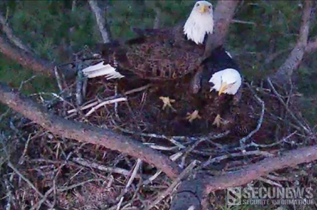 Un couple d’aigles à tête blanche son équipé d’une webcam en direct pour écouter l’ensemble de leur activité.
