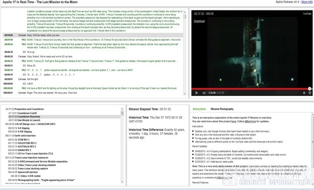 Mis en ligne par Ben Feist, un passionné de la dernière mission habitée sur la lune, le site retranscrit la totalité de la mission.