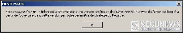 Lorsqu’on clique et que l’image s’affiche, un faux message d’alerte issue du logiciel de Microsoft, Windows Movie Maker, apparaît alors[/quote]