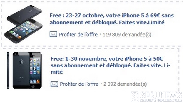 Une arnaque sur Facebook propose L’iphone 5 à 69 ou 50 euros